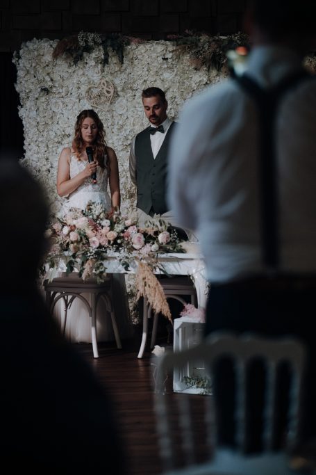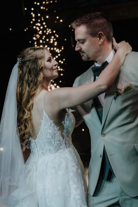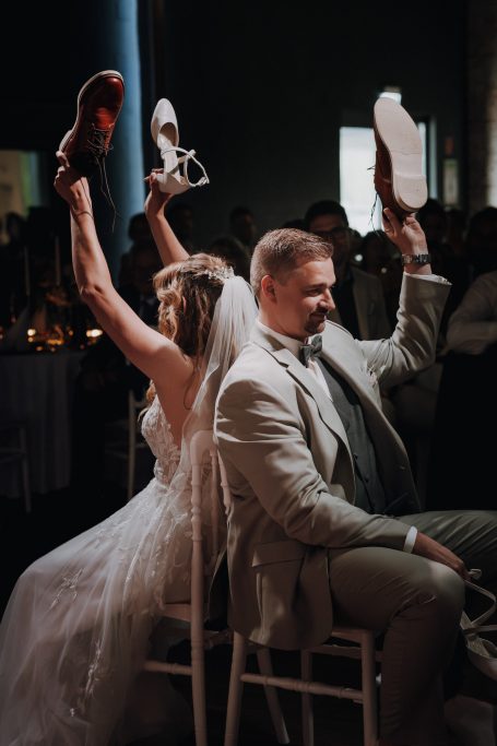 In der Location wartete die Hochzeitstorte, liebevolle Spiele und eine ausgelassene Stimmung. Ein Highlight war der Hochzeitstanz: Das Paar hatte sich eine Choreografie mithilfe eines YouTube-Videos selbst beigebracht. Ein absoluter Wow-Moment, der sowohl in Fotos als auch auf Video festgehalten wurde. Danach war die Tanzfläche voll – Lachen, Tanzen, Feiern bis in die Nacht.