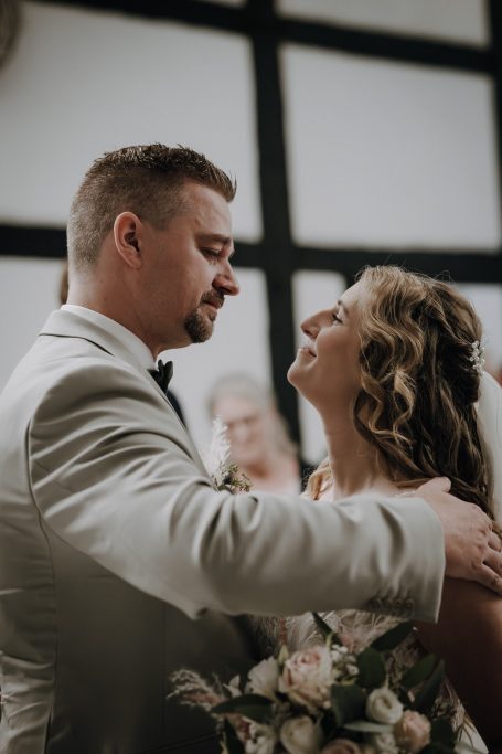 Nach der Trauung ging es zu den Gruppenfotos mit Familie und Freunden. Anschließend hatten wir Zeit für ein Brautpaarshooting, bei dem ganz intime und emotionale Hochzeitsfotos entstanden. Es ist mir wichtig, dass das Brautpaar dabei ganz bei sich bleiben kann – so wirken die Bilder natürlich, ungestellt und voller Liebe.